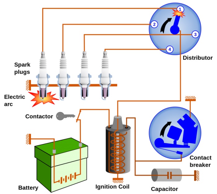 اين قسمت وظيفه تبديل باتري 2 ولت را به برق با ولتاژ 1 به 2 هزار ولت را دارد. اين کار مخلوط هوا و سوخت را به سيستم جرقه تسهيل مي کند.