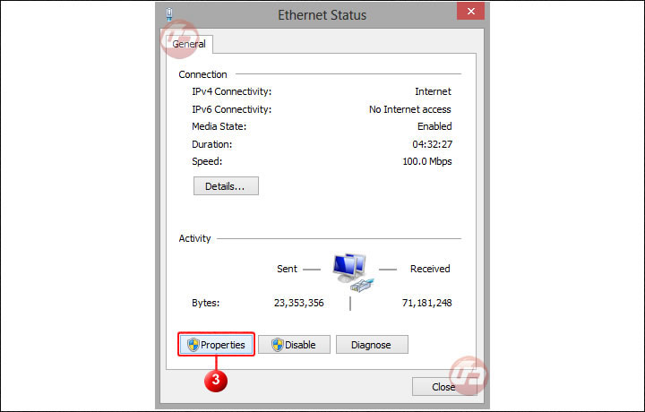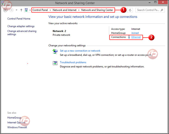 2. گزینه Ethernet را در سیستم عامل ویندوز8 انتخاب نمایید.