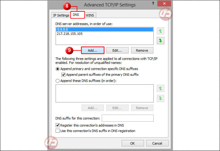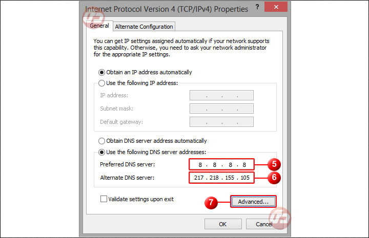6. آی پی 217.218.155.105 را در بخش Alternate DNS server وارد نمایید.