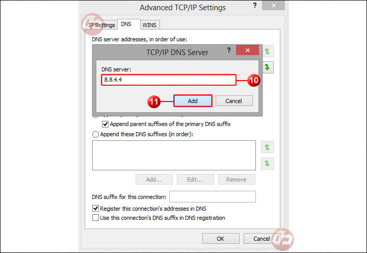 10. در صورت تماییل به اضافه نمودن دی ان اس سوم آدرس مورد نظر مثل آی پی 8.8.4.4 را در بخش DNS server انتخاب نمایید.