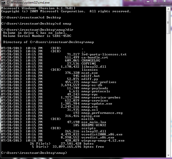 ما در اینجا از نسخه کامندی برنامه Nmap استفاده می کنیم