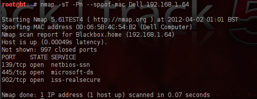 روش دیگری که برای بایپس کردن محدودیت های فایروال در هنگام پورت اسکن وجود دارد ، اسپوف کردن مک آدرس خودمان است