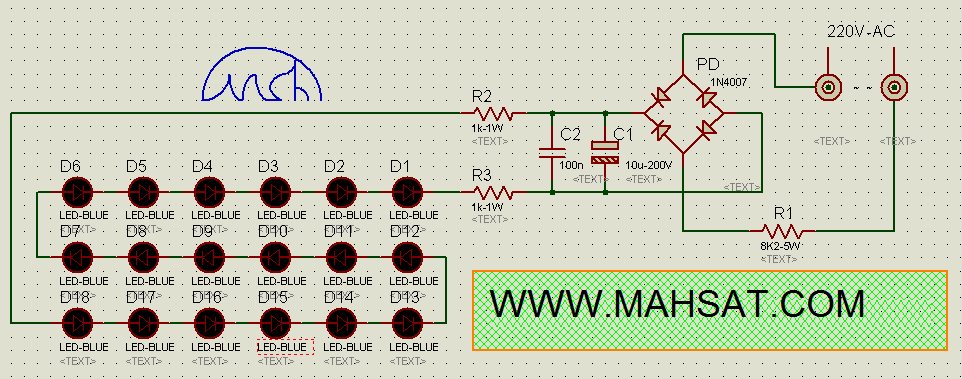 توجه: به علت جریان کشی دیود ها مقاومت R1 مدار تولید حرارت میکند اما مشکلی پیش نخواهد آورد.
