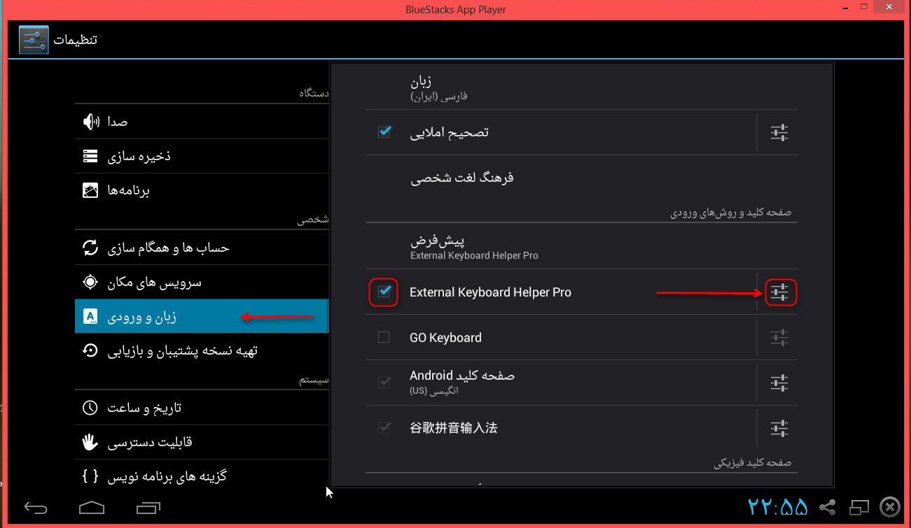 مشکل فارسی نوشتن در bluestacks و رفع آن