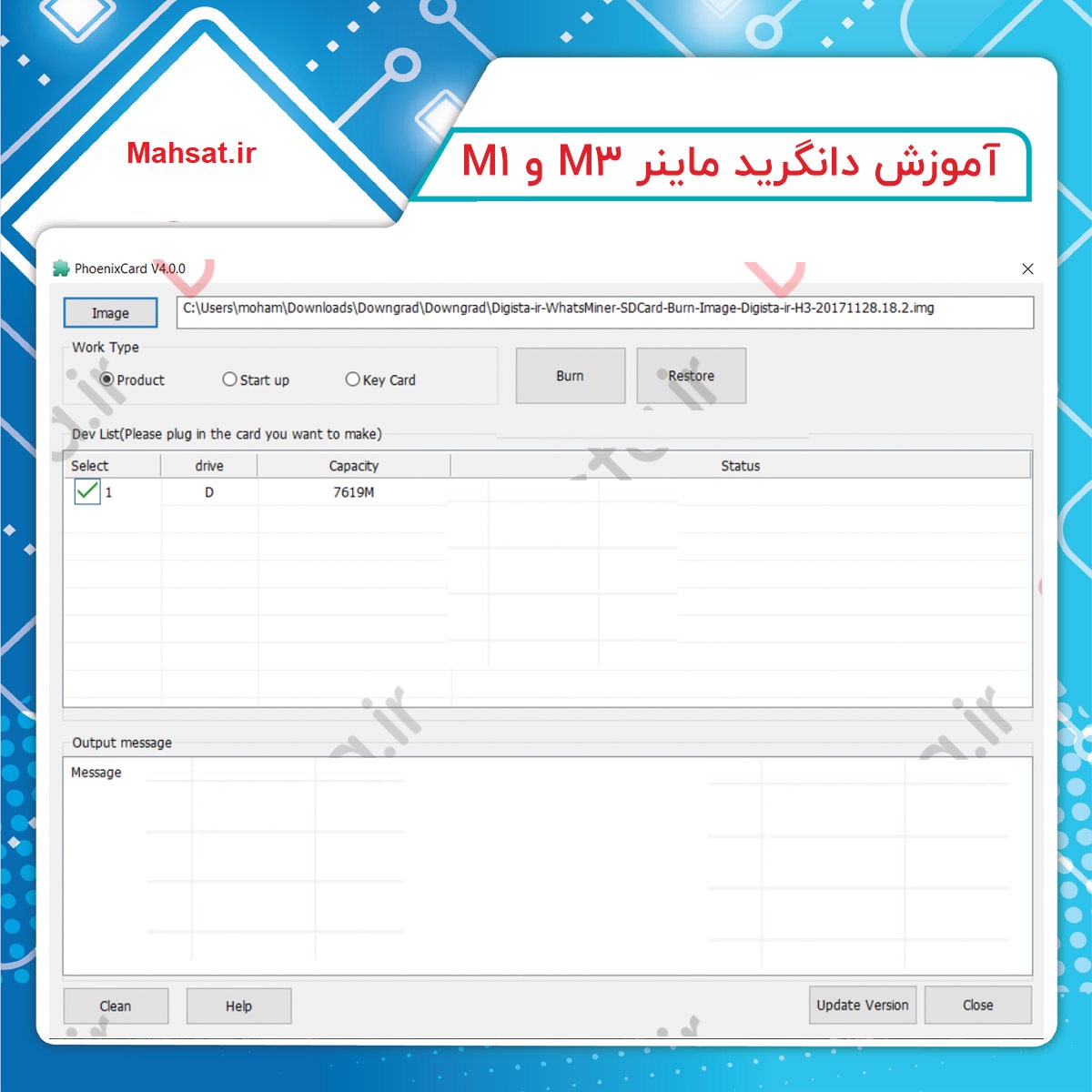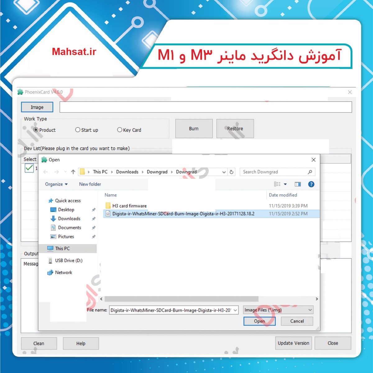 سپس بر روی گزینه image کلیک کرده و از پوشه دانلود شده فایل Digista-ir-WhatsMiner-SDCard-Burn-Image-Digista-ir-H3-20171128.18.2 را انتخاب میکنیم