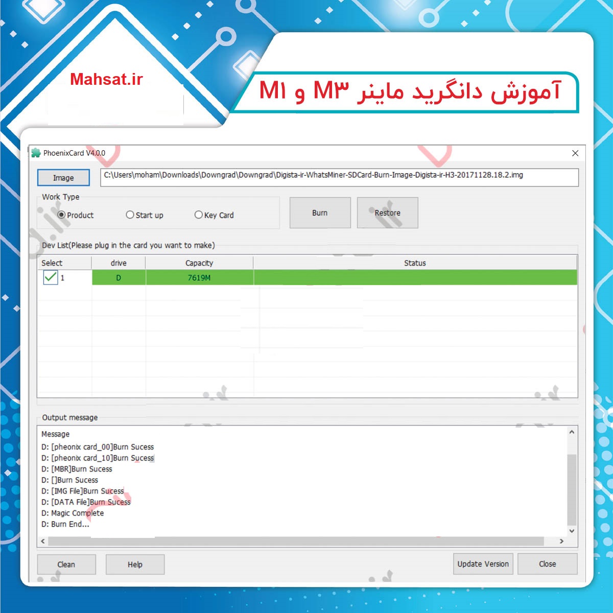 در پایان دکمه Burn را زده و منتظر می مانیم تا فایل بر روی SD Card کپی شود دقت داشته باشید که پس از انجام عملیات فایل ها در رون SD Card قابل مشاهده نیست