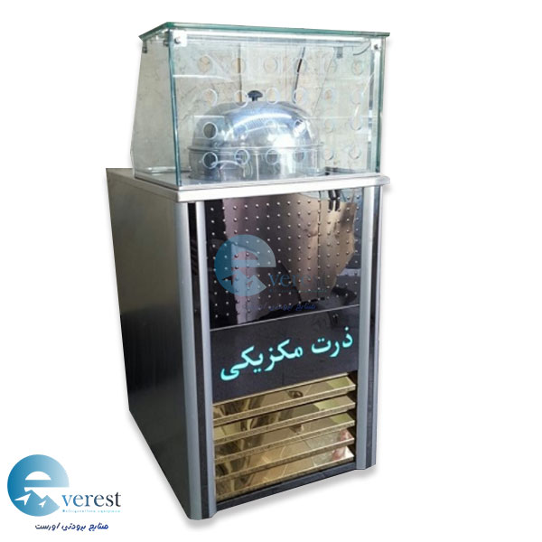 دستگاه ذرت مکزیکی یا کانتر گرم ذرت با پیشخوان شیشه ای و در ابعاد سفارشی تولید می گردد از کانتر ذرت در فست فودی ها مورد استفاده قرار می گیرد.