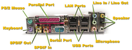 تنها قسمتی از مادربورد که در بیرون از کیس توسط کاربران قابل مشاهده است به پنل پشت آن مربوط می شود. این پنل دارای پورت های مختلف برای اتصال تجهیزات جانبی است. ماوس و کیبورد، اسپیکرها و درگاه شبکه به این پنل وصل می شوند.